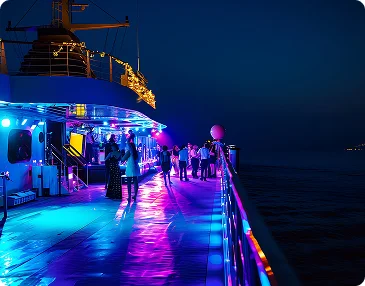 The onboard casino provides an exciting getaway experience where excitement and anticipation of winning big are combined into a single exciting venture. Enter and discover an energetic combination of classic table games and new slot machines along with the cordial dealers that make every moment interesting. Gamble at blackjack or enjoy the thrill of the spinning wheel and the bright lights. The casino offers a friendly environment and is full of energy and opportunity. It is the ideal place to relax and have a night out where anything can occur.